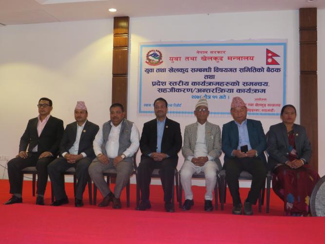 युवा तथा खेलकुद सम्बन्धी विषयगत समितिको वैठक तथा प्रदेश स्तरीय कार्यक्रमहरुको समन्वय, सहजिकरण र अन्तरक्रियात्मक कार्यक्रम