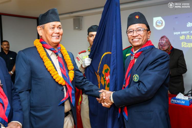 माननीय युवा तथा खेलकुद मन्त्री तेजुलाल चौधरीज्यू प्रमुख स्काउटरको दिक्षान्त समारोहमा
