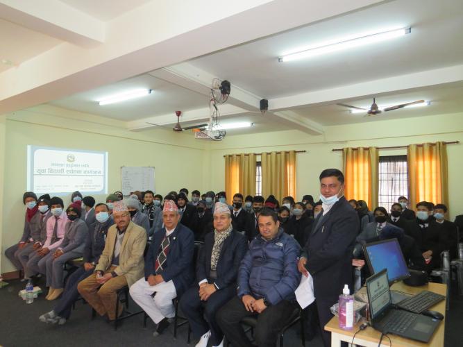 मिति २०७८ पौष १८ गते काठमाडौं जिल्लाको पद्मोदय मा.वि मा मन्त्रालयका सचिव डा. दामोदर रेग्मीज्यूको प्रमुख आतिथ्यता, विद्यालयका प्र.अ. श्री नारायण प्रसाद गौतमज्यूको अध्यक्षता, मन्त्रालयका सहसचिव श्री विष्णुराज ढकालज्यूको आतिथ्यता, नेपाल रेडक्रस सोसाइटीका प्रतिनिधि श्री धर्मदत्त बिडारीज्यू, नेपाल स्काउटका सहायक निर्देशक श्री प्रदिप बगालेज्यू, युवा परिचालन तथा परामर्श शाखाका उपसचिव श्री यमेन्द्र उपाध्यायज्यू, मन्त्रालयका कर्मचारीहरु लगायत विद्यालयका कक्षा ११ र १२ का विद्यार्थीहरु बीच मानवता प्रवर्द्धनका लागि युवा विद्यार्थी सचेतना कार्यक्रम सम्पन्न भयो ।