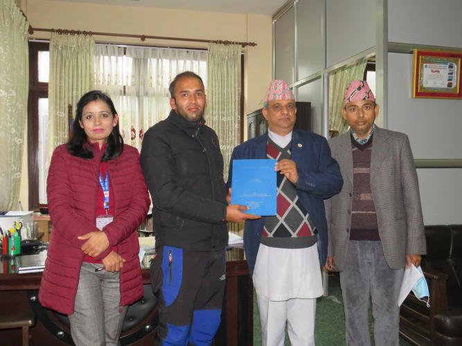 मिति २०७८ पौष २३ गते युवा तथा खेलकुद मन्त्रालयका सचिव डा. दामोदर रेग्मीज्यूको संयोकत्व, सहसचिव डा. कमल प्रसाद पोख्रेलज्यू, विभागी प्रमुख शारिरिक शिक्षाका श्री शैलेन्द्र सिलुवाल, उपसचिव श्री शान्ति बहादुर वस्नते, शाखा अधिकृत श्री प्रमिला खरेल, क.अ श्री श्रीकृष्ण खकुरेलको उपस्थितिमा खेलकुद सम्बन्धी शोध कार्यमा सहयोग तथा विद्यार्थी प्रोत्साहन कार्यक्रममा गत विगतका वर्षमा यस मन्त्रालयबाट शोधकार्य सहयोग लिई सम्पन्न गरेका विद्यार्थीहरुसँग शोध कार्यको प्रतिवेदन सम्बन्धी वृहत रुपमा छलफल भई प्रतिवेदन समेत हस्तान्तरण कार्य सम्पन्न भयो ।