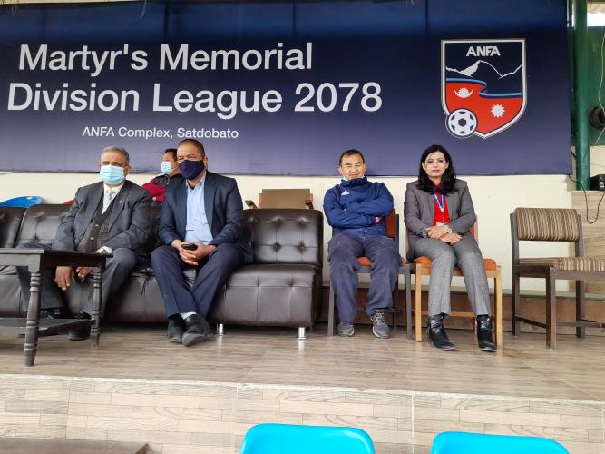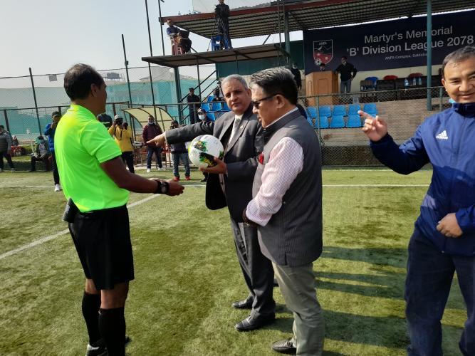 अखिल नेपाल फुटबल संघको आयोजनामा हुन गइरहेको Martyr's Memorial "B" Division League 2078 को उद्घाटन समारोह मिति २०७८ फागुन १८ गतेका दिन विहान ९.३० बजे नेपाल सरकार युवा तथा खेलकुद मन्त्रालयका सचिव डा. दामोदर रेग्मीज्यूबाट फुटबल हस्तान्तरण गरी प्रतियोगिताको उद्घाटन गर्नु भयो । सो समारोहमा अखिल नेपाल फुटबल संघका अध्यक्ष लगायत संघका पदाधिकारी, पत्रकार तथा मन्त्रालयका कर्मचारीहरुको समेत सहभागिता रहेको थियो ।