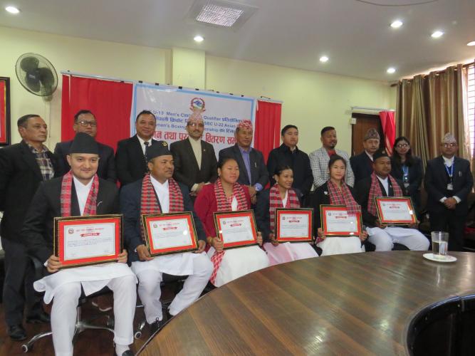 ICC U-19 Men’s CWC-Asia Qualifier प्रतियोगितामा विजेता नेपाली राष्ट्रिय क्रिकेट टिम एवं ASBC U-22 Asian men & women’s Boxing Championship का खेलाडी, प्रशिक्षक तथा अफिसियलहरुलाई नगद पुरस्कार सहित सम्मान कार्यक्रम